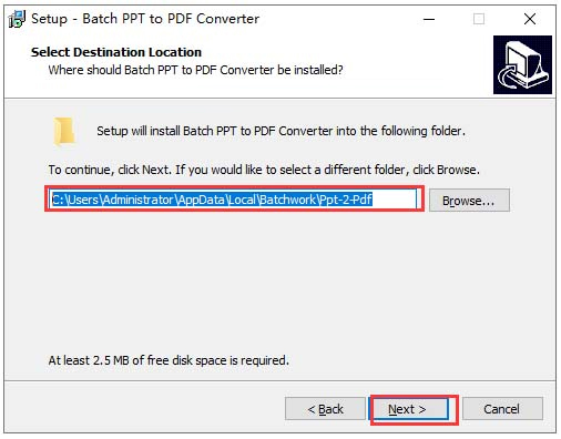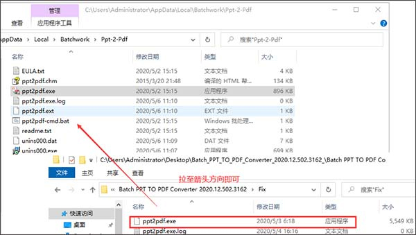 7、将Fix文件夹下的“ppt2pdf.exe”复制到原程序安装目录下并替换,软件即可激活成功。 默认安装目录【C:\Users\Administrator\AppData\Local\Batchwork\Ppt-2-Pdf】:
