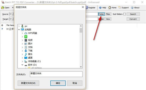 3、点击Folder,浏览文件夹,选择一个文件夹进行添加