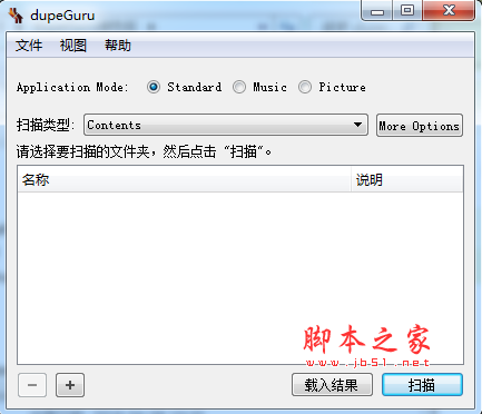 1、dupeGuru可用于搜索各类格式的文档、压缩包、安装包等一切文件。启动软件后,点击界面左下角的「+」按钮,将需要扫描查找重复文件的文件夹加入到 deupGuru 即可开始进行扫描。