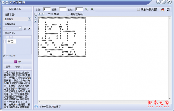 2、可用于制作个性文字签名档,支持qq表情字符,可以直接把字符画发送到QQ聊天窗口,来给QQ聊天增进特别效果。