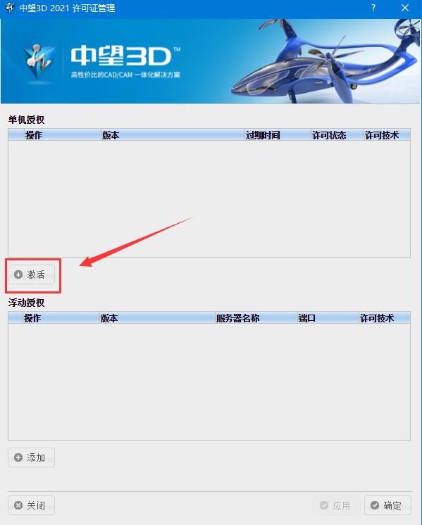 2、点击许可管理器,在单机授权下方点击激活按纽;