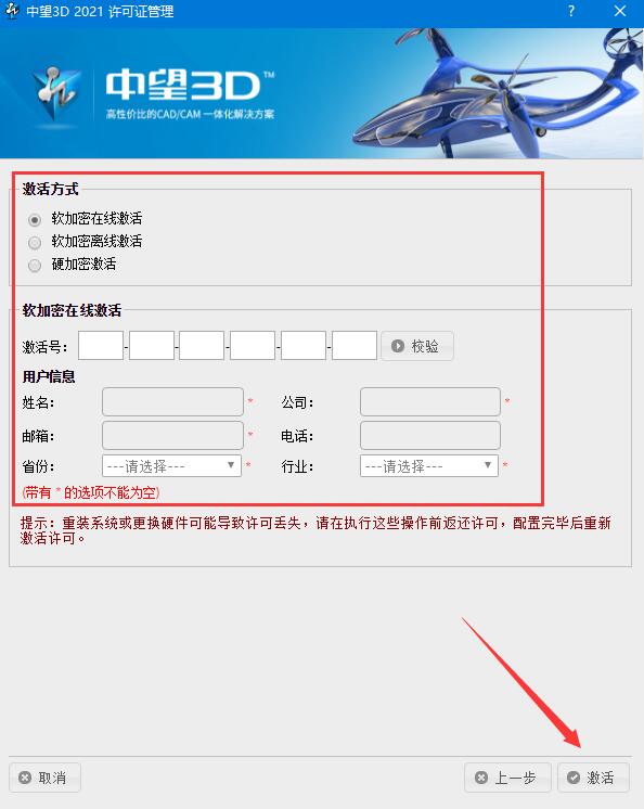 3、支持软加密在线激活、软加密离线激活和硬加密激活,输入激活码即可;