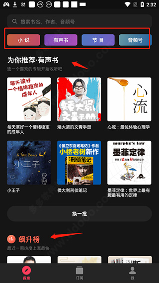 8、当然当你不知道要选择听什么书的时候也可以看看飙升榜的内容哦。