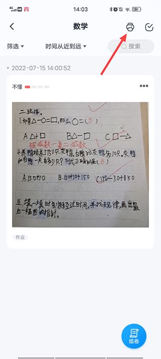 2、再点击右上角的打印图标,选择你要打印的错题,点击打印。