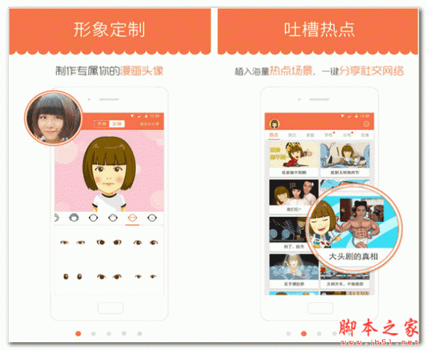 软件特色: 形象定制 动动手指,一分钟制作专属于你的漫画形象 形象植入 漫画形象自动植入海量场景,自动生成匹配表情 吐槽热点、分享生活 用漫画吐槽热点、分享生活,让信息表达更有趣 逗趣玩法 替换真实大头,添加心情标签,更多玩法等你体验 每天更新 漫画素材每天更新,热点事件实时追踪 一键分享 一键分享社交网络,嗨翻你的社交圈