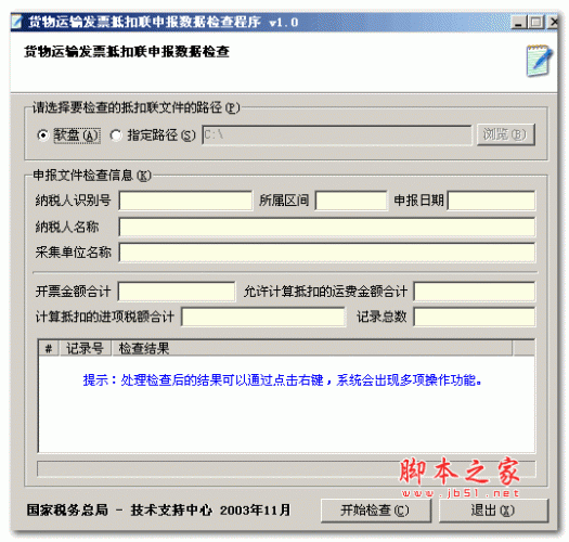 货物运输(国税、地税)发票检查软件是一款针对货代行业中国家统一制定的《国际货物运输代理业专用发票》而开发的发票(国税、地税)检测工具,检查软件配合国家税务总局对税控发票的要求,提供税存根联申报数据发票检查、发票抵扣联申报数据检查等功能,实现对发票的税控管理,达到以票控税的目的。 货运发票使用范围(1)自开票纳税人认定 ①从事货物运输的承包人、承租人、挂靠人和个体运输户不得认定为自开票纳税人; ②铁路运输、管道运输、国家海洋运输业务,装卸搬运以及公路、内河客运业务的纳税义务人,不需要进行自开票纳税人资格认定。 (2)代开票情形 代开发票归纳: ①不符合自开票规定的纳税人(承包、承租、挂靠、个体运输户); ②不需要办理工商登记和税务登记的单位和个人; ③取照后,办理税务登记前发生的运输业务; ④未办而补办税务登记之间发生的运输业务。 (3)代开票的开具要求 代开票时需要征收的税种:营业税、城建税、教育费附加、企业所得税。 (4)核定征收中的代开票问题 ①按照《试行办法》的规定,对代开票纳税人实行定期定额征收方法。凡核定的营业额低于当地确定的营业税起征点的,不征收营业税;凡核定的营业额高于当地确定的营业税起征点的,代开发票时按规定征收税款。 ②单位和个人利用自备车辆偶尔对外提供货物运输劳务的,可不进行定期定额管理,代开票时对其按次征税。 ③代开票纳税人实行定期定额征收方法时,为避免在代开票时按票征收发生重复征税,对代开票纳税人可采取以下征收方法: a.在代开票时按开具的货物运输业发票上注明的营业税应税收入按规定征收(代征)营业税、所得税及附加。 b.代开票纳税人采取按月还是按季结算,由省级地方税务局确定。 c.代开票纳税人在缴纳定额税款时,其在代开票时取得的税收完税凭证上注明的税款大于定额税款的,不再缴纳定额税款;完税凭证上注明的税款小于定额的,则补缴完税凭证上注明的税款与定额税款差额部分。 (5)货运发票的抵扣问题 ①准予抵扣的货物运费金额是指自开票纳税人和代开票单位为代开票纳税人开具的货运发票上注明的运费、建设基金和现行规定允许抵扣的其他货物运输费用;装卸费、保险费和其他杂费不予抵扣。货运发票应当分别注明运费和杂费,对未分别注明,而合并注明为运杂费的不予抵扣。 ②增值税一般纳税人取得的货物运输业发票,可以在自发票开具日90天后的第一个纳税申报期结束以前申报抵扣。