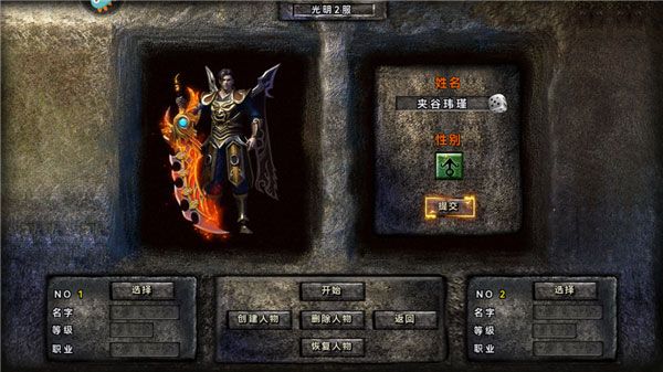 4、名字取完之后,点击开始游戏,正式开启属于自己的传奇世界。